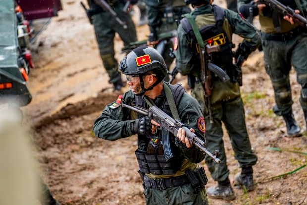 Khi hiệu lệnh “Tấn công!” vang lên, khung cảnh lập tức vỡ òa với loạt súng nổ chát chúa, khói lửa mịt mù, hành động dồn dập như một bộ phim điện ảnh sống động ngoài đời thực. Neko Lê rưng rưng: “Khi cùng lực lượng Phòng, chống khủng bố vào trong chiến trận, vừa nghe tiếng súng nổ vừa nhìn đồng đội mình đu dây rất ngầu, tôi cảm nhận mình là một phần của những con người siêu nhiên”. Tiến Luật cũng phải thừa nhận: “Những cảnh đó trong phim điện ảnh chắc phải tập luyện đến cả tháng mới thực hiện được. Các chiến sĩ chỉ làm một lần là quá đẹp”.