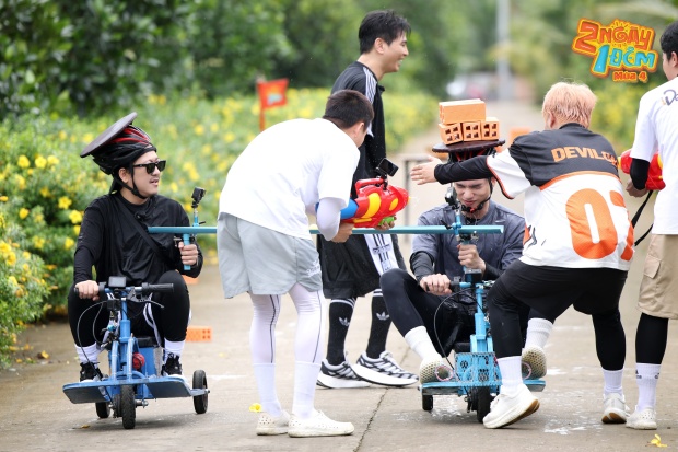 Một trong những thử thách khiến khán giả rất thích thú đó chính là game “Chuyền Gạch”. Hai thành viên của mỗi đội sẽ vừa chạy xe điện, vừa giữ được gạch trên đầu cũng như giữ thăng bằng của những quả bóng bàn. Thử thách sẽ không có gì thú vị khi đội đối thủ sẽ được cản phá bằng súng nước khiến cho đội chơi không mấy dễ dàng di chuyển.